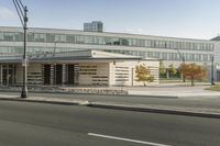 A stunning view of the modern architecture in Toronto city during the break of day, with clear skies and a straight road leading towards the business district.