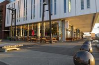 A stunning modern building in the heart of Wellington, New Zealand, with its unique architecture standing tall against the dawn sky.