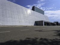 A view of the modern architecture in Zaragoza, Spain, with its low and high buildings, featuring a mixture of composite materials and concrete. The city's urban design is showcased through its office buildings, museums, and financial district. The clear sky and tree-lined streets add to the overall aesthetic of the cityscape.