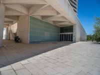 This stock photo showcases a modern architectural marvel located in Zaragoza, Spain. The structure features clean lines, open spaces, and a sleek design. The bridge and underpass add depth to the image, while the clear sky creates a beautiful backdrop. The hard shadows on the pavement create a visually striking contrast. This photograph captures the urban charm and contemporary architecture of Zaragoza, making it a perfect representation of the city's modernity and architectural prowess.