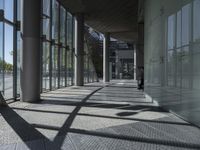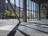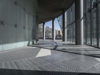 The Sony Center in the Potsdamer Platz business district of Berlin, Germany, showcases modern architecture with a mix of glass walls, metal handrails, and concrete columns. This snapshot captures the bustling urban life and the stunning design of the city's infrastructure in the sunlight of a summer day.