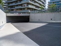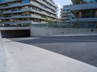 A cobblestone road leads to a residential area of modern architecture in a European city, with a clear sky above and a hard shadow below, showing the urban design of a city life in Germany.