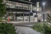 A snapshot of modern urban architecture in Toronto, Canada. The image showcases a high-rise office building with a glass facade, surrounded by vegetation and open spaces.