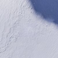 A stunning monochromatic winter landscape in a concrete city, showcasing the open space covered in white snow. The elevated view captures the icy surface and grey atmosphere, creating a freezing and frosty atmosphere. The silver buildings and black winter trees contrast against the white snow, providing a serene and peaceful atmosphere on the urban piste.