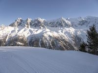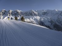 From the ski slopes of Mont Blanc Massif, a mountain range in the French Alps, a tourist looks out across the glacial landscape. Snow-covered mountains, clear skies, and contrails in the sky create a beautiful winter scene, a popular destination for tourists and skiers alike.
