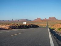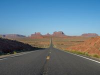 In the heart of the USA, Monument Valley in Arizona and Utah offers a breathtaking landscape where the iconic 'Forrest Gump' road stretches into the horizon under clear skies. The break of day reveals nature's beauty as the asphalt road leads straight through this picturesque setting. Visitors can immerse themselves in the vastness of the one-quarter road, a perfect spot to witness the dawn and marvel at the stunning natural scenery.
