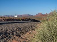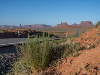 In the heart of the USA, Monument Valley showcases breathtaking landscapes at the break of day. The clear sky frames the iconic road featured in 'Forrest Gump', leading through Arizona and Utah. Nature's beauty unfolds along the asphalt road, with one-quarter of the journey offering stunning views of this picturesque American scenery.