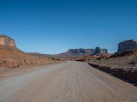 In the iconic landscapes of Monument Valley, Arizona and Utah offer a mesmerizing blend of roads and tracks cutting through the rugged terrain. The clear skies above highlight the natural beauty of the area, perfect for off-road adventures. Whether it's a dirt street or a gravel road, the straight paths lead you on a journey through one quarter of the vast and picturesque scenery, showcasing the raw beauty of nature under the bright daylight.