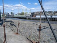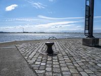The coastal city of Bremen, Germany is a vibrant urban area with cobble stone roads, tree-lined avenues, and a variety of architecture. An early morning view of the Bremerhafen pier reveals the clear sky and azure lake, with the flag flying in the wind above a lighthouse and wooden jetty. A calm atmosphere is created from the sunlight and water resources, providing a perfect spot for outdoor furniture and a peaceful break from the city life.
