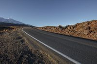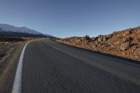 Scenic view of a mountain landscape with lush vegetation and plant community, as seen from an elevated road. The road surface, made of asphalt, curves through the rural countryside, lined with Armco barriers and guard rails for safety. The day is clear with fluffy clouds in the sky, and the view overlooks the high hills and snowy peaks in the distance. The brown trees and tar on the road add a touch of natural beauty to the overall picturesque scenery. This is a breathtaking view of the mountain landforms, highlighting the highlands and infrastructure that blend seamlessly with the horizon and sloping plain below.