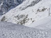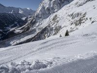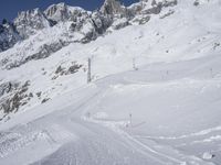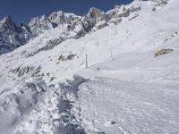 A scenic view of the Alps in France on a clear, sunny day. Tourists can admire the mountain ranges, landforms, and open spaces, and the ski piste and moraines can be seen in the foreground. The glacial terrain, slopes, highlands, and valleys are visible in the distance, and a few contrails are seen in the clear sky.