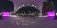 A stunning view of a modern city at night, showcasing the beautiful architecture and vibrant neon lights.
