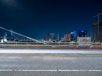 The city of Holland at night, illuminated by electric light and featuring modern architecture, urban design, bridges, skyscrapers, roads, and a horizon of cityscape and artificial lighting.