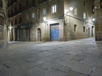 Night view of a low building in Barcelona