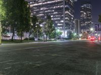 A stunning night view of the modern architecture in Los Angeles, California, USA. The cityscape is illuminated by the vibrant lights of skyscrapers and street lights, creating a captivating urban scene.