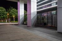 A stunning night view of a modern cityscape in Shanghai, China, showcasing the beautiful blend of urban design, neon lights, and artificial lighting on office buildings and hotels.