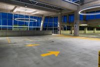 A straight view down a dark and illuminated concrete road in Toronto, Canada at night.