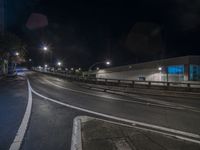 A clear sky illuminates the city streets with artificial light, showcasing office buildings and urban design at night.