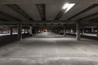 A stunning night view of Wellington city in New Zealand. The cityscape is illuminated with bright lights, showcasing the unique architecture and urban landscape. The straight road leads to a parking lot, surrounded by low concrete buildings and a warehouse. The street lights provide artificial light, creating a captivating atmosphere in this public space.