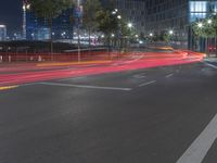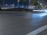 A stunning view of the modern architecture and urban infrastructure in Berlin, Germany. The city lights illuminate the streets, creating a beautiful contrast against the dark sky. The motion blur of passing vehicles adds a sense of energy to the scene.