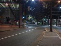 A stunning view of a city at night with modern architecture, illuminated by street lights and artificial light, showcasing the urban design and infrastructure of the city.