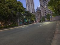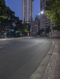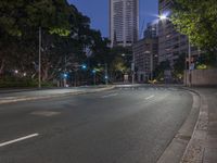 Nighttime Cityscape with Skyscrapers and Traffic Lights