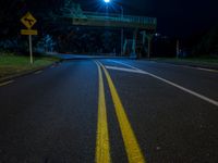 A straight road illuminated by artificial light cuts through a peaceful residential suburb in New Zealand, under a clear sky.