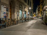 A scenic road at night in Tuscany, Italy, illuminated by artificial light, showcasing the beautiful landscape and straight down the road view.