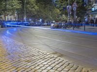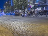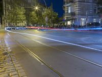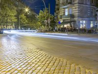 A captivating view of the city streets of Berlin, Germany at night, showcasing the beautiful architecture, vibrant street lights, and bustling urban life.