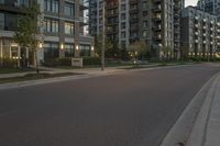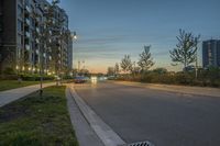 A stunning view of the modern architecture in Toronto, Ontario, Canada, during the night. The city lights illuminate the residential area, showcasing the vibrant urban design and bustling metropolitan atmosphere.