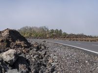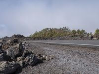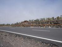 A view of the winding road cutting through a rocky Spanish landscape, with a cloudy sky and Armco barriers lining the highway. The coastal city of Tenerife, located in the Canary Islands on the European continent, is a popular destination for road trips among nature lovers and geologists alike.