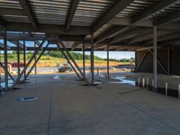 A view of a construction site in the city, with open space and a cloudy day sky.