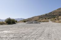 A scenic landscape in New Zealand's South Island, showcasing an open space with low sand and dirt roads surrounded by mountains and hills. The clear sky and natural environment make it a perfect destination for nature lovers and adventure seekers.