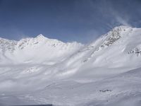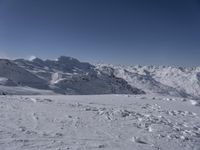 A tourist overlooks the snow-covered mountains and glaciers of the French Alps from an open surface, taking in the view of the valley, arête, and massif, with clear skies and white clouds above. Skiing, hiking, and tourist attractions in the mountain range make it a popular destination for winter and nature enthusiasts in Europe.
