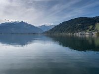 The picturesque landscape of Zell am See, Austria, with its vast open space, clear sky, and view of the lake and mountain in the distance, is a breathtaking sight.
