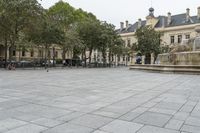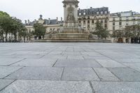 Classic architecture, urban design, and a wide open public space come together in Paris, France, as roadways, cobble stone walkways, monuments, and vegetation come together against a gloomy grey sky. Tourists enjoy a day of exploration through the city, taking in the sights of this vibrant European urban center.