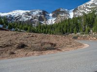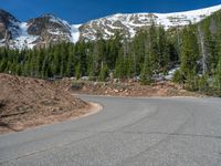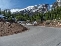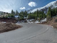 Located in Colorado, USA, the iconic Pikes Peak rises majestically in the landscape. A road winds through the mountains, surrounded by snow-covered peaks and clear skies. The asphalt road offers a breathtaking journey, with views of nature at its finest. Clouds drift lazily overhead, adding to the picturesque scene of this mountainous region. From the one-quarter mark up the mountain, the snowy terrain creates a serene and peaceful atmosphere.