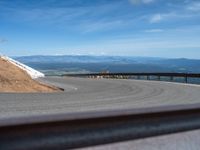 Located in Colorado, the road to Pikes Peak offers a breathtaking snowy landscape. The asphalt winds through mountains, curves, and overlooks, with snow-capped peaks in the background. Clouds drift lazily in the sky, adding to the picturesque nature scene. Visitors can enjoy the stunning views from the summit, taking in the vast expanse of the USA's natural beauty.