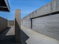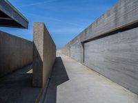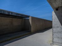 In the heart of Porto, Portugal, the European charm is evident in the clear skies casting hard shadows on concrete surfaces and walls. Open spaces and pavers create a dynamic contrast, while the play of light and shadow adds depth to the urban landscape. One-quarter of the scene is bathed in sunlight, highlighting the textures of the walls and surfaces under the clear sky.
