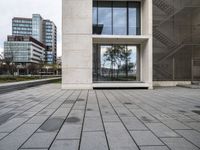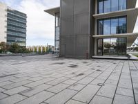 A view of Lisbon, Portugal from a high-rise showing the city's modern architecture, urban design, and residential areas. Grey asphalt roads lead to the business district with paver flooring and buildings with wood fixtures, rectangles windows and composite material facades, while trees and flowers provide shade in public spaces and open areas.