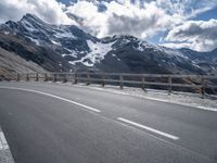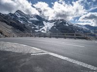 A road with an Armco barrier is seen in the Austrian landscape, providing a guard rail for travelers navigating the curves of the elevated road with a top-down view of the mountains and nature below. The asphalt and clear sky provide a peaceful backdrop to this overview of the countryside.