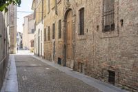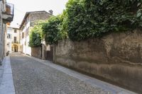 A charming alley-way with classic architecture and cobble stone road in a picturesque European village.