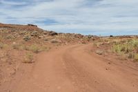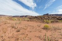 A beautiful day in the rugged wilderness of Utah, USA. The red rock formations and desert vegetation create a stunning natural environment in Davis Canyon.