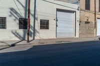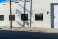 A view of a residential area in Los Angeles, California, USA. The houses are made of brick and have wooden windows and doors. The neighborhood is lined with asphalt roads and has a clear sky.