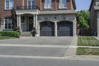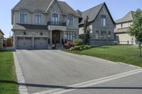 A beautiful residential area in Toronto, Canada, with houses and buildings made of concrete and brick walls. The clear sky adds to the tranquil atmosphere of the neighborhood.
