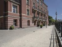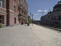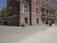 A straight down the road view of a residential area in Berlin, Germany. The classic architecture of the buildings, cobblestone roads, and open public spaces create an inviting atmosphere for the city life of Europe.