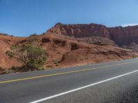 In the picturesque landscape of Utah, a road stretches into the distance under a clear sky. The asphalt road cuts through the stunning natural scenery, offering a glimpse of the beauty that surrounds it. With clouds gently floating overhead, this road is a perfect representation of the peacefulness and tranquility of the American countryside. Whether you're driving or simply enjoying the view, this road in Utah is a testament to the breathtaking landscapes that can be found in the USA.