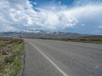 In the rural landscapes of Utah, a straight road stretches into the distance, surrounded by majestic mountains and vast open skies. The asphalt road cuts through the picturesque scenery, offering a profile view of the stunning natural beauty. Clouds drift lazily overhead, adding to the serene atmosphere. This road, known as 1/4角, showcases the unique and breathtaking landscapes that the USA has to offer. It's a perfect location for those seeking to immerse themselves in the beauty of nature.