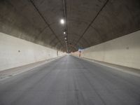 A one quarter angle view of a concrete and asphalt road with a tunnel wall in the background in Europe, Germany.