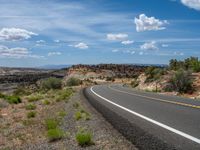 In the heart of rural Utah, a winding road stretches into the distance, surrounded by breathtaking natural landscapes. The asphalt road cuts through the picturesque scenery, with rolling hills and vast open skies. Clouds float peacefully overhead, casting shadows on the road below. This tranquil setting provides the perfect escape from city life, allowing visitors to immerse themselves in the beauty of nature. Whether exploring on foot or by car, this road offers a memorable journey through the stunning landscapes of Utah.